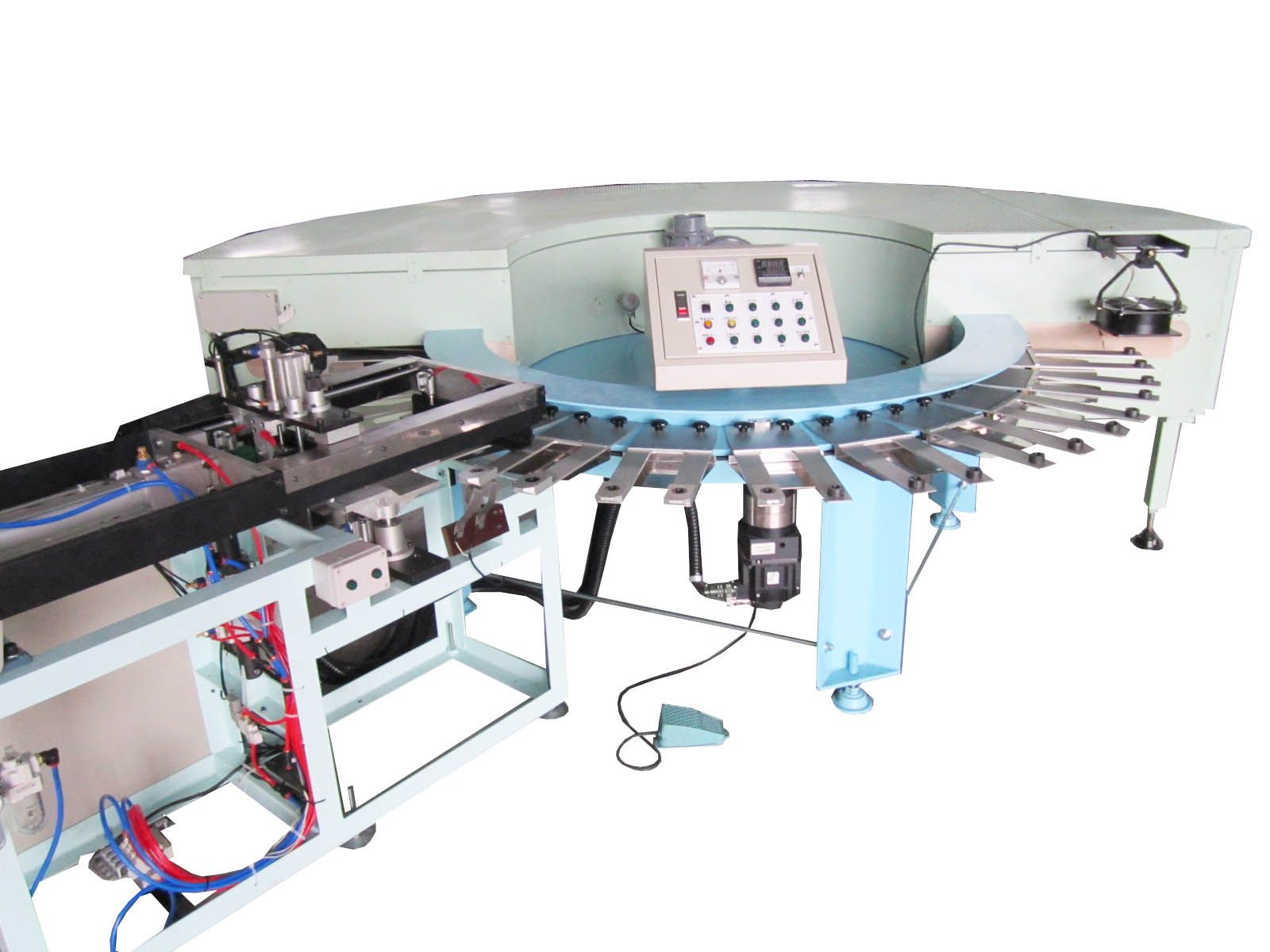 2. CS-X系列印刷機可運用於手套及襪類或各種裁片織物上之多色印花,本機採用穩定性高的傳動馬達帶動分割器來傳動,經由機械式電腦輔助定位系統配合恆壓印刷裝置而得到精準的印刷產品,並使用精密軸承減少損耗,增加機械壽命。
